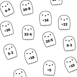 Straszne działania – halloweenowe memo to świetna gra na spostrzegawczość i rozwijanie umiejętności matematycznych. W tej zabawie online zadaniem dziecka jest szukanie par duchów, tak aby działanie było zgodne z wynikiem.