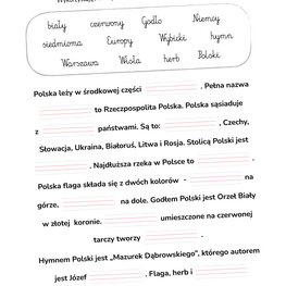 Do gry dołączona jest karta pracy, która w przystępny sposób sprawdzi, bądź uzupełni wiedzę dziecka. Idealna pomoc w nauce patriotyzmu i rozwoju wiedzy o ojczyźnie dla dzieci w klasach 1-3 szkół podstawowych.