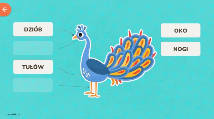Gra edukacyjna dla dzieci – budowa ptaka to doskonała szansa na naukę podstawowych części ptaka poprzez zabawę. Dziecko uczy się budowy ptaka, przeciągając nazwy we właściwe miejsca.