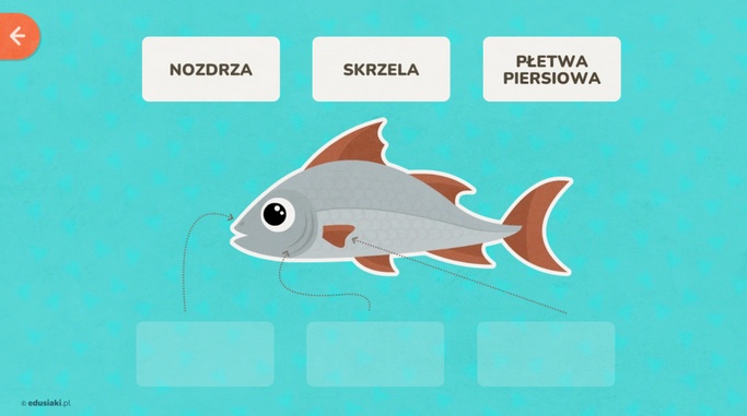 Budowa ryba to kolejna edukacyjna zabawa na stronie edusiaki.pl. Ta gra online w ciekawy sposób prezentuje budowę i wygląd części ryby.