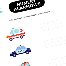W celu weryfikacji zdobytej wiedzy polecamy pobrać i wydrukować kartę pracy. Dziecko może w niej samodzielnie wpisywać numery alarmowe do właściwych pojazdów.