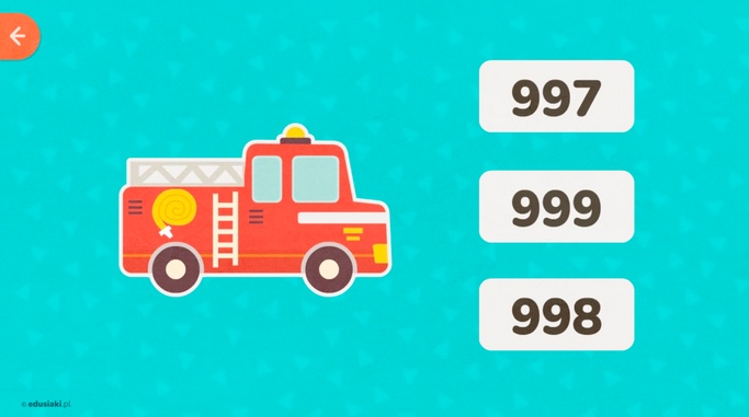 - 998 – numer do straży pożarnej, gdy jest pożar.